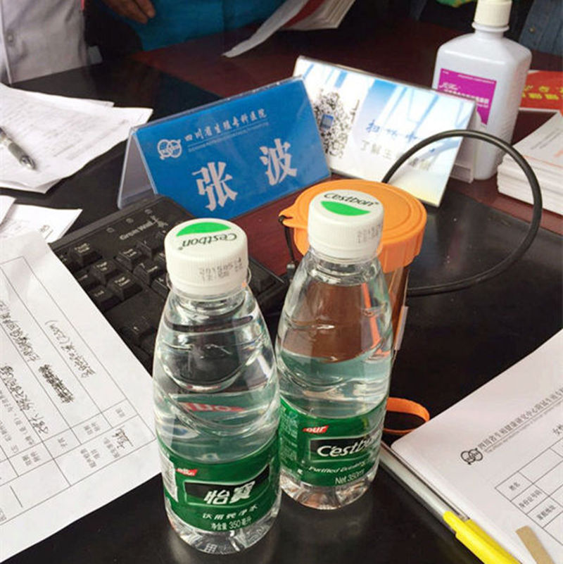 中午12:00,从早上8:30就一直放在医生们桌上的矿泉水静静地、孤独地立在那里,一上午了,大家忙的都没有时间喝一口水。因为考虑到老百姓都是从50多里以外的地方赶过来,医疗队成员们决定中午不休息,每个人有15分钟上厕所和吃午餐时间,之后马上又开始为老百姓做检查……