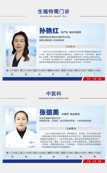 您有一份好孕正在预约中!11月22日-11月28日专家安排表来啦~