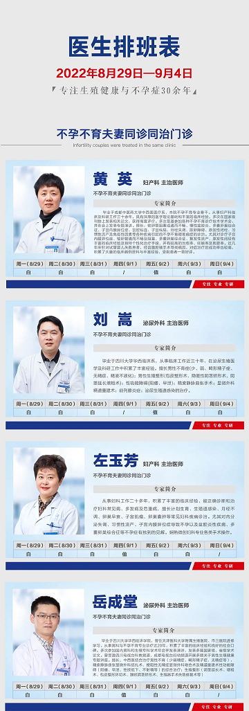 四川生殖专科医院8月29日至9月4日,专家安排表来了